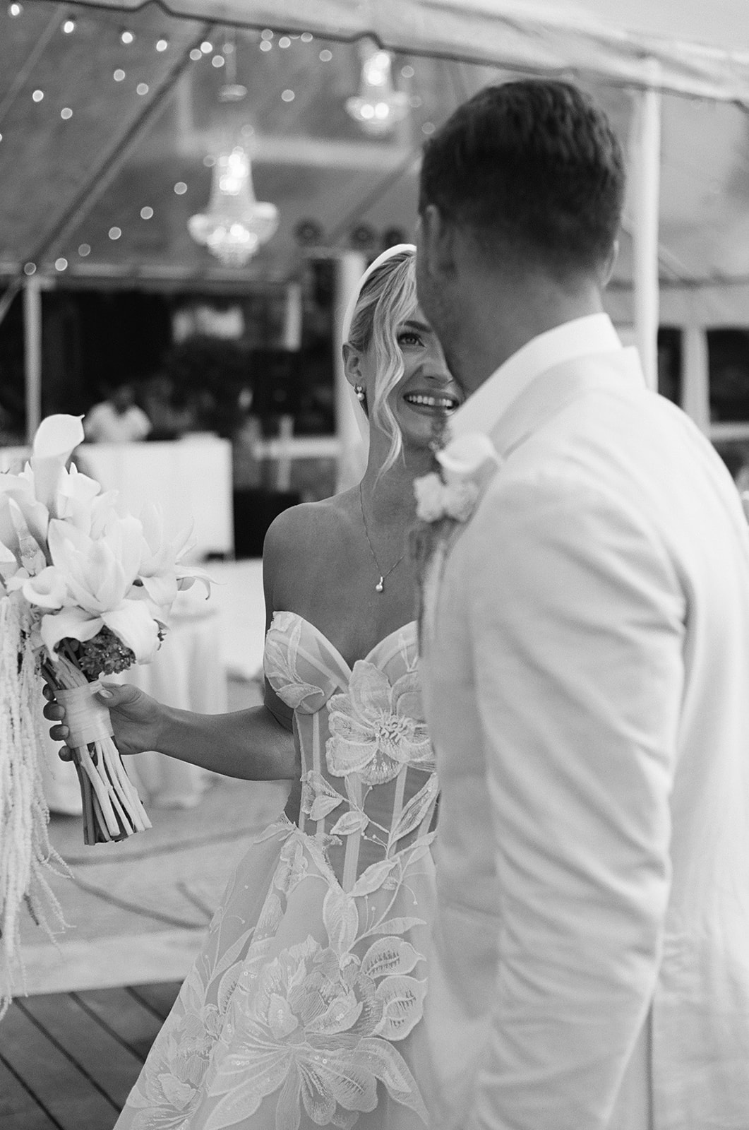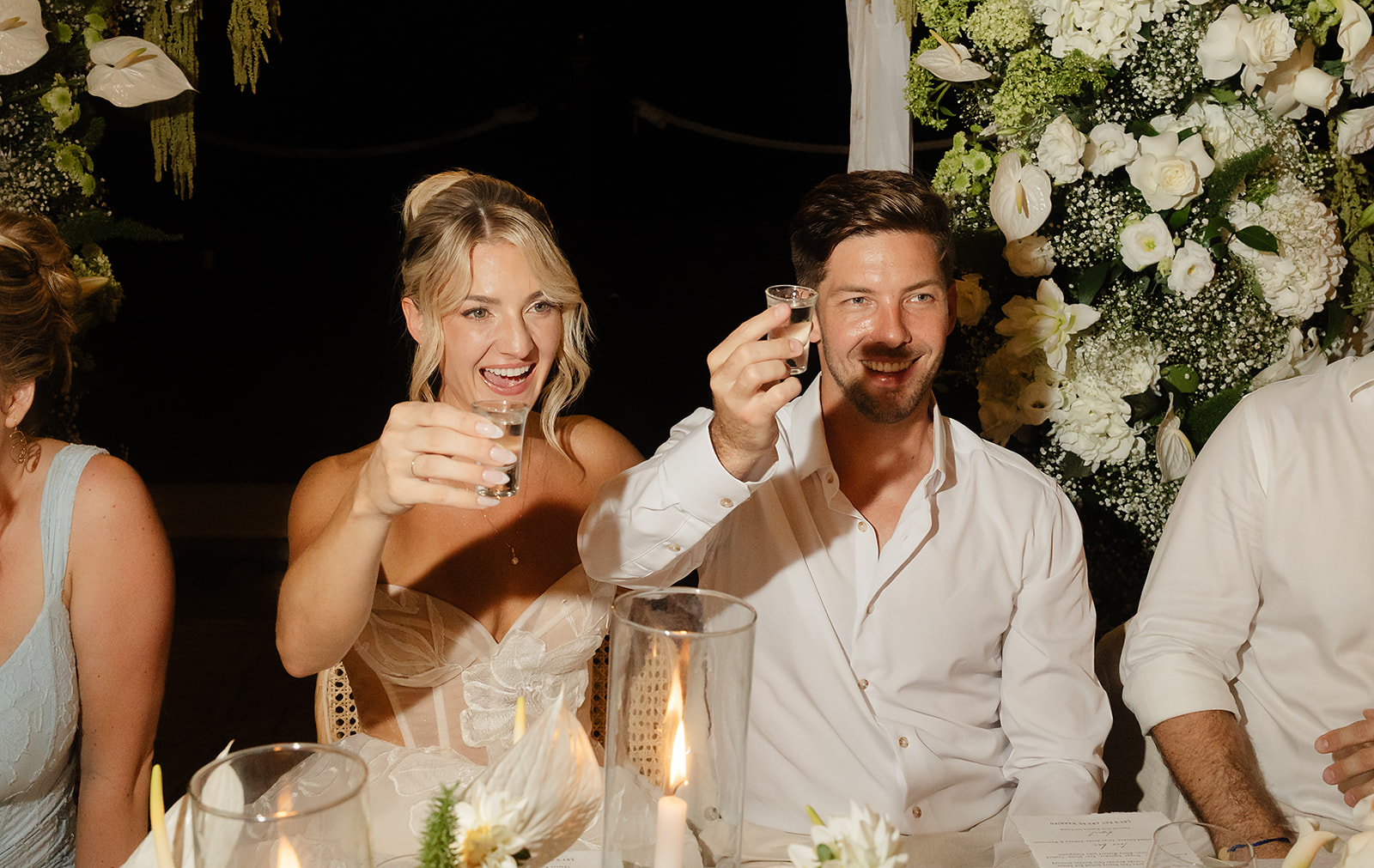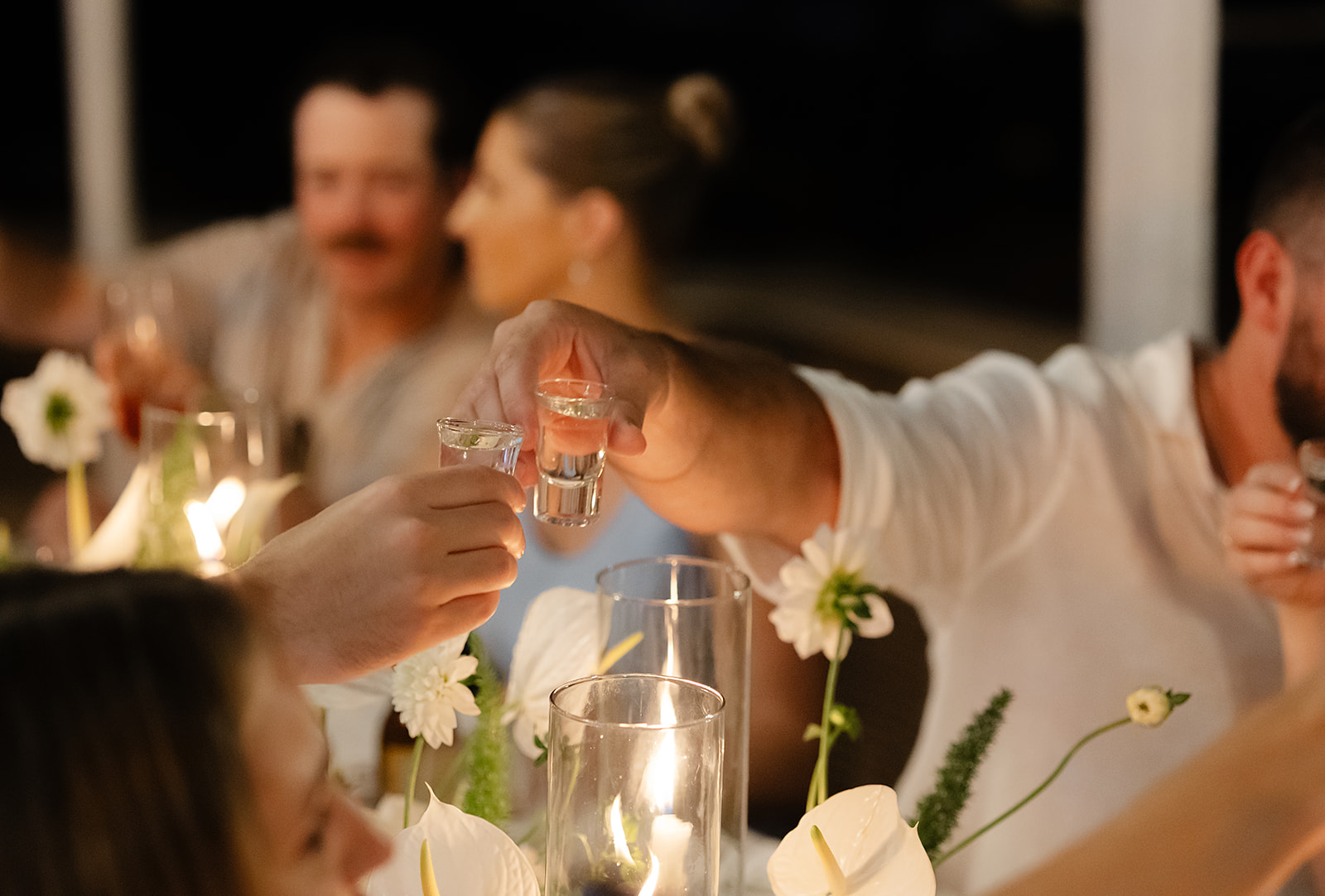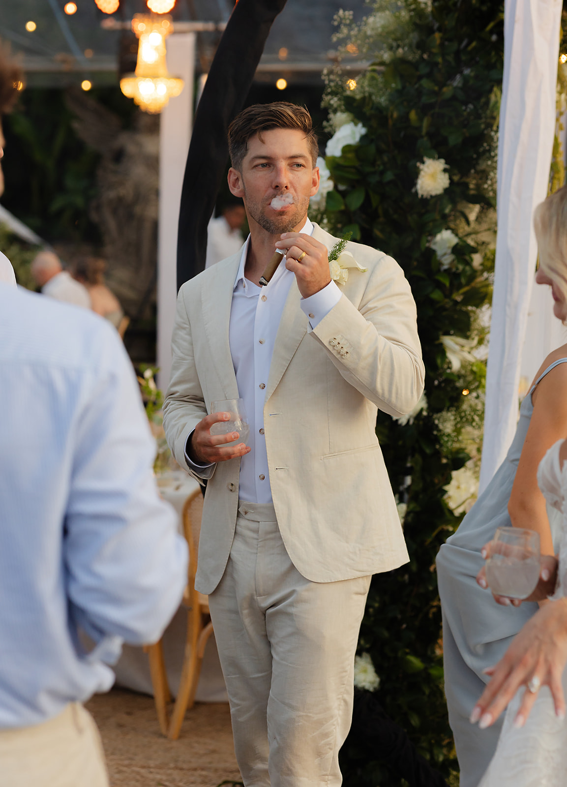 In the days leading up to the wedding, a hurricane had passed through the region, leaving uncertainty around what the weather might bring. Yet the atmosphere that ultimately defined the day was not one of tension, but of intention. Surrounded by their closest friends and family, the couple embraced the unpredictability of the experience and allowed the celebration to take shape organically.