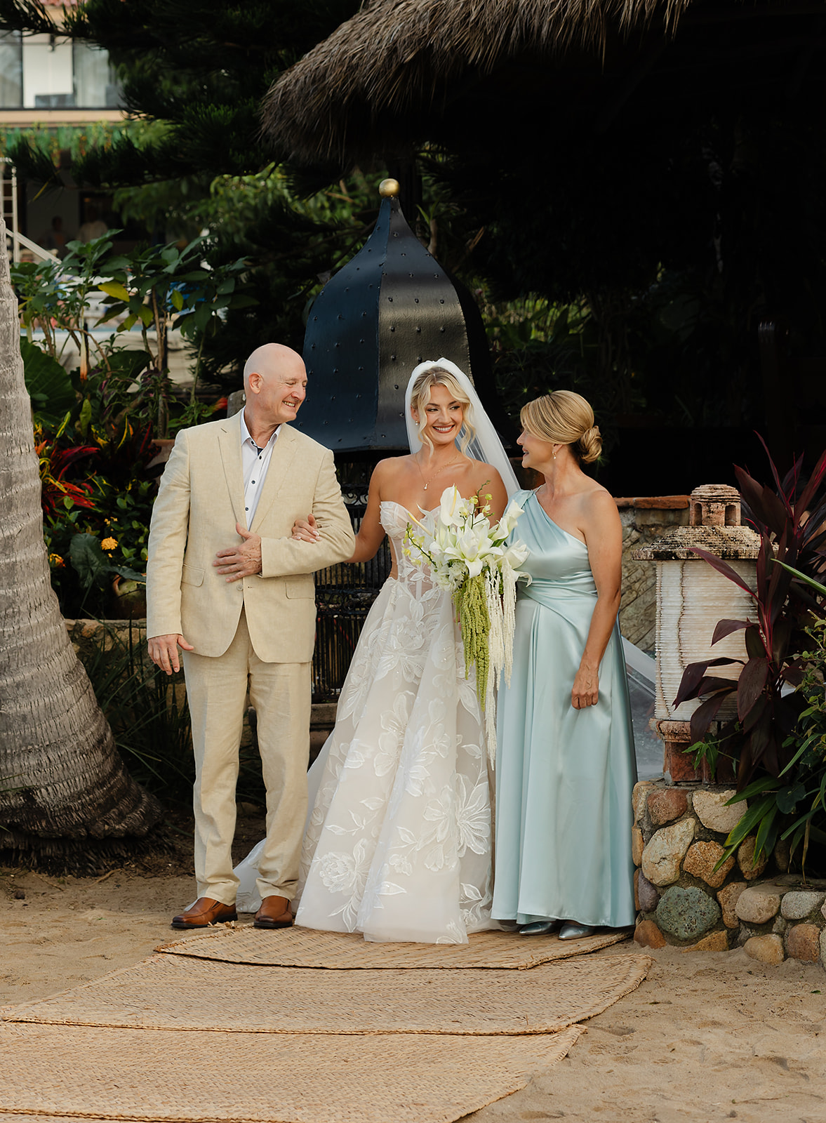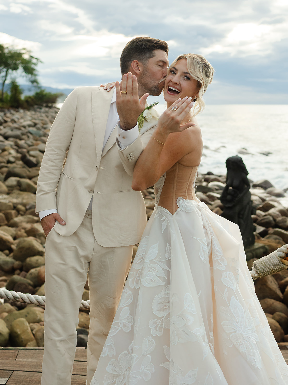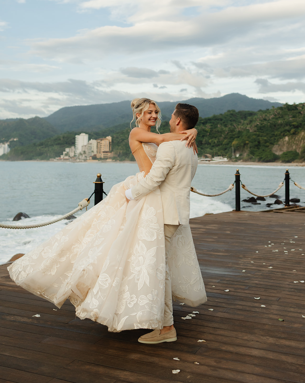 In the days leading up to the wedding, Puerto Vallarta experienced the effects of a hurricane, leaving the forecast uncertain and the atmosphere heavy with humidity. As the day approached, the possibility of rain remained constant, creating a sense of unpredictability that could have easily shaped the emotional tone of the celebration.