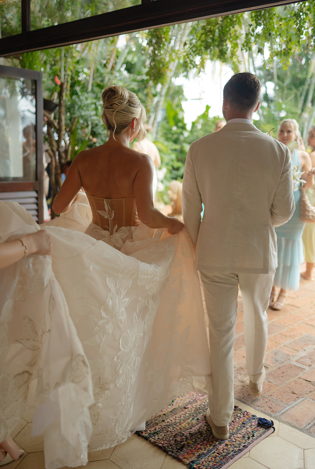 This level of immersion is one of the defining qualities of destination weddings held in private residences. Rather than transitioning between separate locations, the experience becomes centralized, allowing relationships to deepen and the celebration to take on a more organic flow. The villa, accessed by a small walking bridge, reinforced this sense of intentional separation from the outside world, making the wedding feel both intimate and expansive at once.